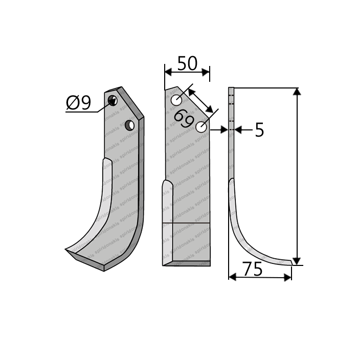 Twisted Cultivator Point 75x10x495 (5 Holes) KK45-75mm Right..